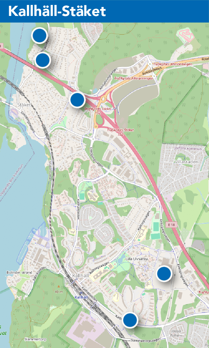 Planerade förtätningar i Kallhäll-Stäket (bildkälla Openstreetmap)