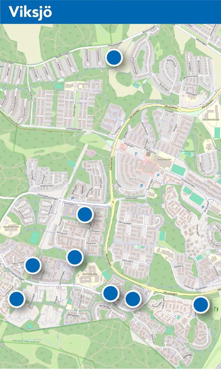 Planerade förtätningar i Viksjö (bildkälla Openstreetmap)